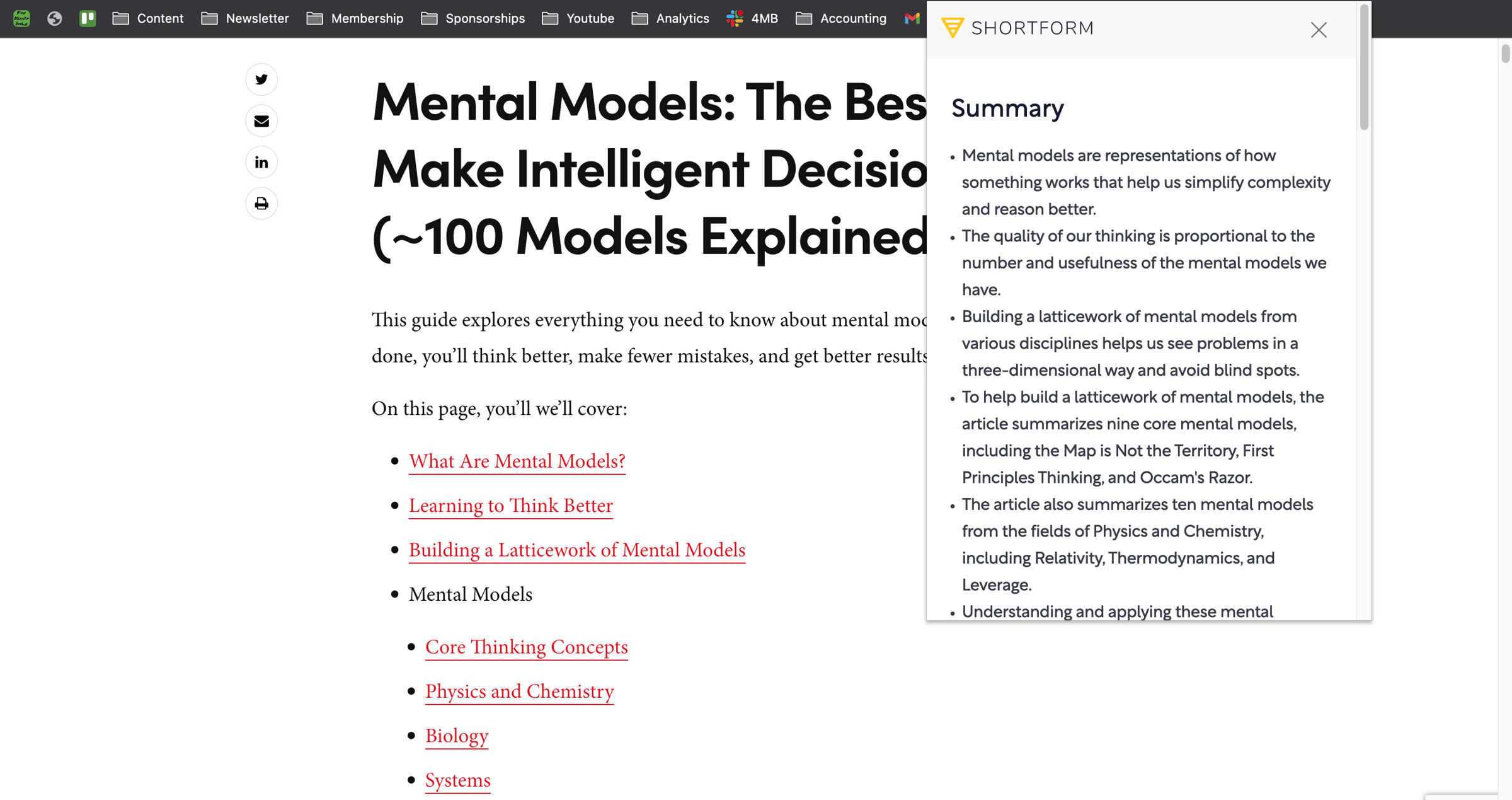 After you install it and are logged in to your Shortform* account, you can click "Get Summary" on any article, Youtube video, or even podcast episode, and within seconds, it'll give you a short overview in a few bullet points. The tool even provides some extra context and counterarguments. It's fantastic.