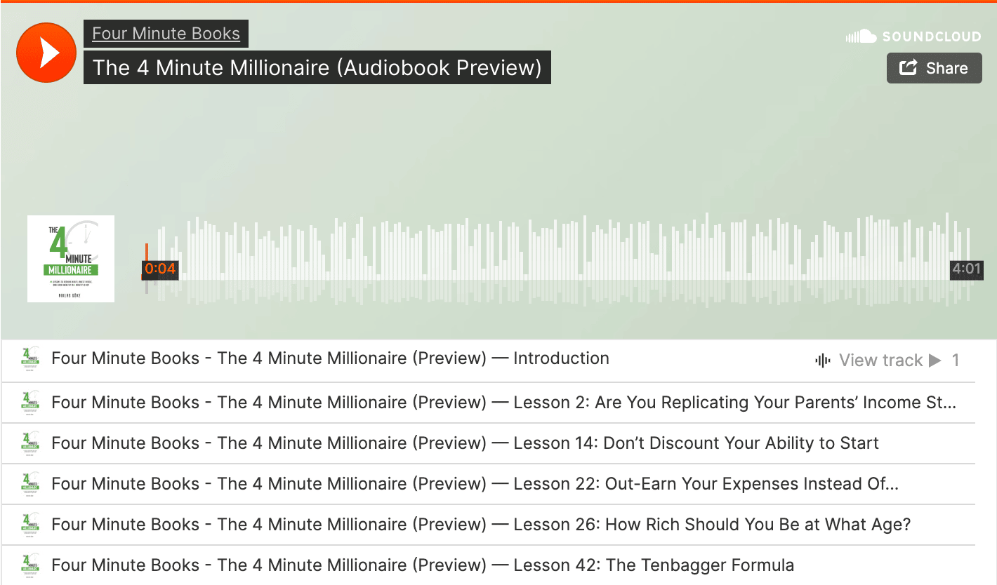 Get the audio, start listening, and work towards financial freedom, 4 minutes at a time.