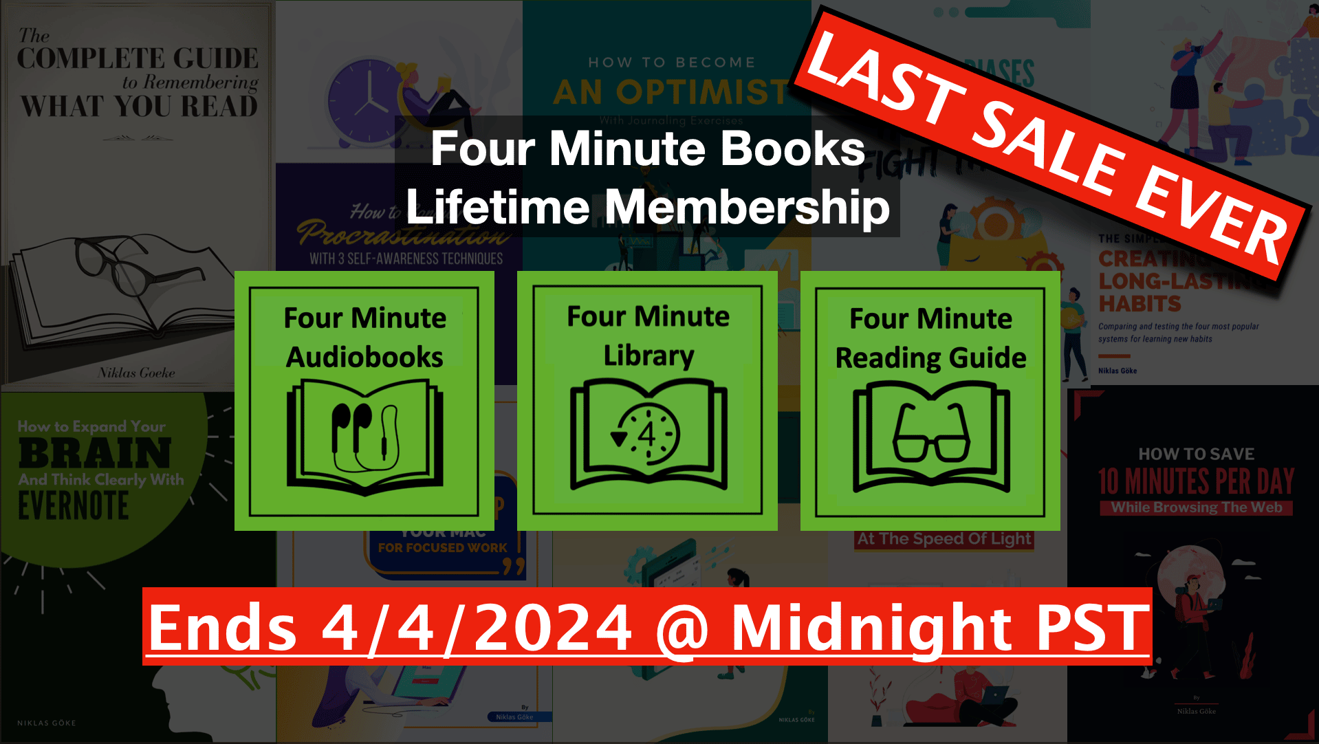 tl;dr: There are now less than 24 hours left to become a Lifetime Member of Four Minute Books. In this email, we'll recap everything we've learned so far so you can decide for yourself. Whenever you're ready, you can join here »