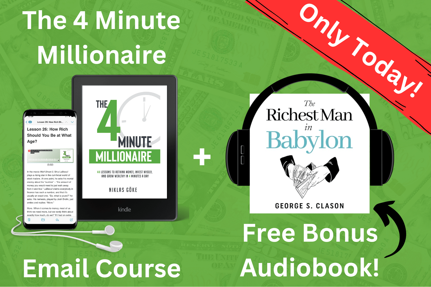 12 minutes per week, and in less than 4 months, your financial life might look entirely different. And all that for a buck per lesson. Actually, even less, if you consider today's special launch bonus to celebrate the official "Let's go!" for the course: If you buy within the next 24 hours, you'll get an exclusive, full-length bonus audiobook of The Richest Man in Babylon. This all-time financial classic from 1926 in its original, uncensored edition is priceless—and today, you'll get it for just that: free on top of your purchase of The 4 Minute Millionaire Email Course. This bonus is good for the next 24 hours only. Like I said in the beginning: It's okay to get rusty with your money. It happens to all of us. What's not okay is staying rusty with your money, getting to old age, and then realize all you have to work with is dust. Improving our financial lives is something that should happen all the time—and the only way it can do that is if we make it a small but consistent habit. The 4 Minute Millionaire Email Course will help you build that habit, and better yet, it'll be so easy it'll feel like magic. Think about it: